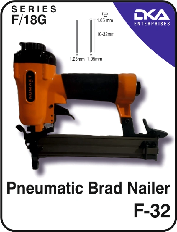 | Features | 10mm - 32mm Brads,360 Degree Top Air Exhaust, Full Metal Trigger & Magazine, Lightweight tool, Compact and easy to pack., Wide & Stable Safety Device and unjamming catch |